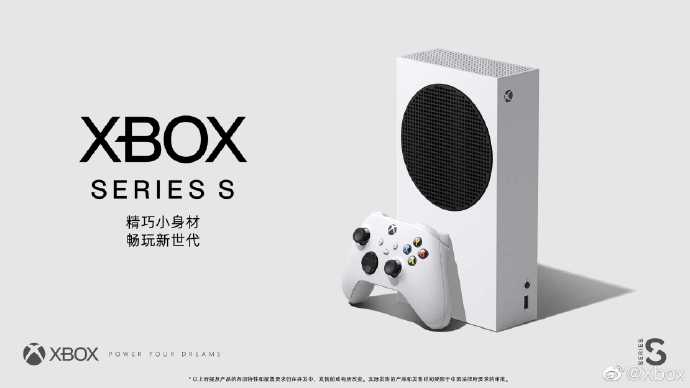 中,微软表明其价格为 299 美元(约人民币 2045 元),一起也是“最小”的 Xbox 主机。在微博上,官方宣扬语为“精巧小身段畅玩新代代”。在宣扬图中,Xbox Series S 为竖置,根据手柄的巨细来看,这台主机的厚度应该与 Xbox One S 差不多。Xbox Series S 机身上还有一个用于散热的巨大黑色圆形区域。