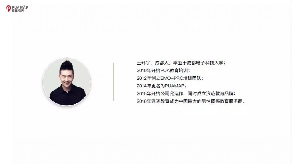 最终来看浪迹情感的开创团队,其间王环宇持股70%,其作为“浪迹情感”的开创人、南院文明的CEO,在PUA圈内被奉为“宗师级”人物。上一年2月,王环宇因“涉嫌传达淫秽物品”入狱,被关37天。他微博被封、身败名裂,却又追随者许多。